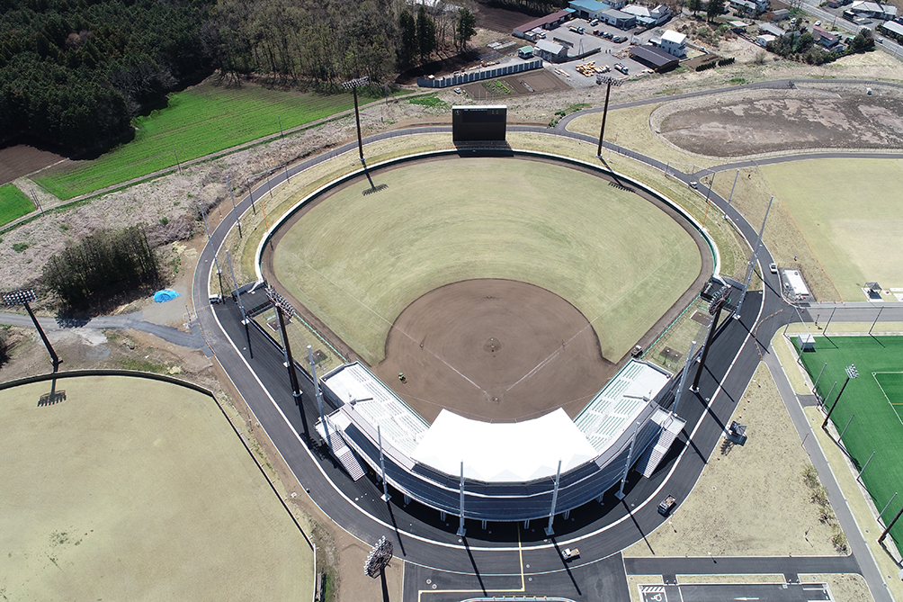 日本体育施設が施工を担当した真岡市総合運動公園(真岡ハイトラ運動公園) 多目的広場、野球場をご紹介します。
