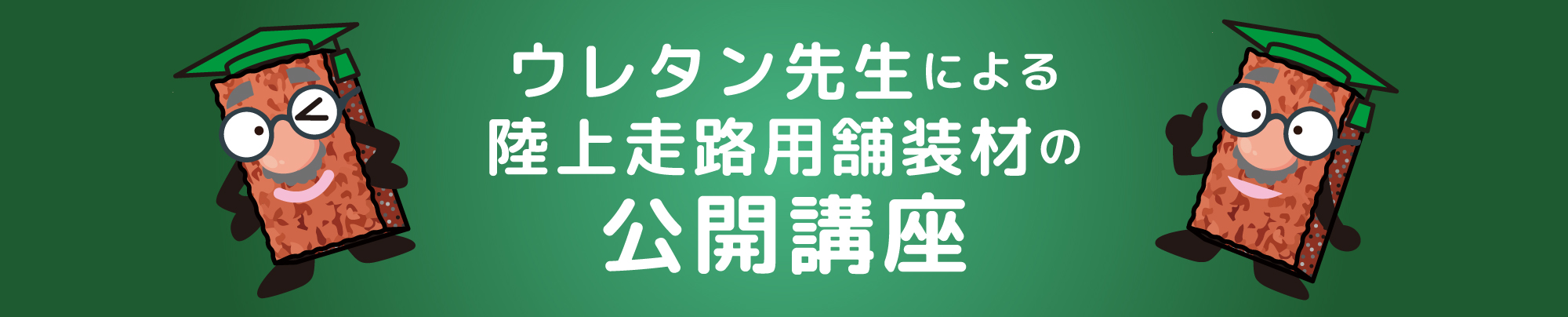 陸上競技場の走路など、スポーツ施設の“足元”を支える重要なウレタン舗装材について、40年間ウレタン舗装一筋の技術者、マスコットキャラクターウレタン先生とともに、その奥深い世界を少しずつ紐解いていく【陸上競技用舗装材の公開講座】をスタートしました。